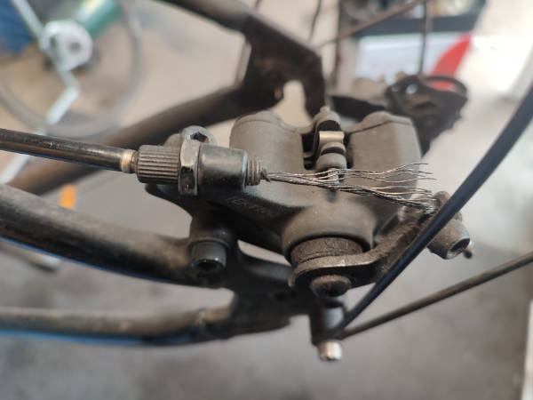 Then there was a mechanical disc brake cable that was severely frayed. It was slowly but surely pulling itself through the brake caliper's clamp. Now, imagine if that snapped completely while you were bombing down a hill! That's an obvious high-risk situation that you absolutely want to avoid. It was a proper wake-up call for the customer about checking their bike over.